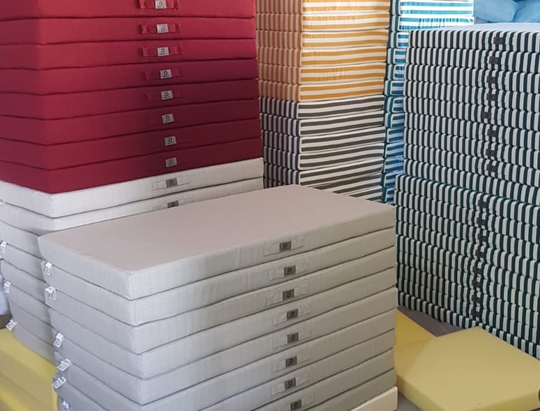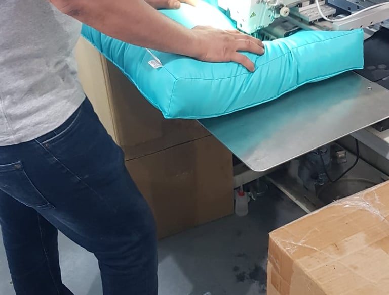 Au fil des ans, Dinotex s'est spécialisée dans la fabrication de coussins pour bains de soleil, banquettes d'extérieur, et autres produits textiles pour les espaces en plein air. Grâce à une expertise solide et à une équipe talentueuse d'environ 30 collaborateurs, l'entreprise a su établir une production de haute qualité qui se distingue par sa durabilité et son confort optimal.